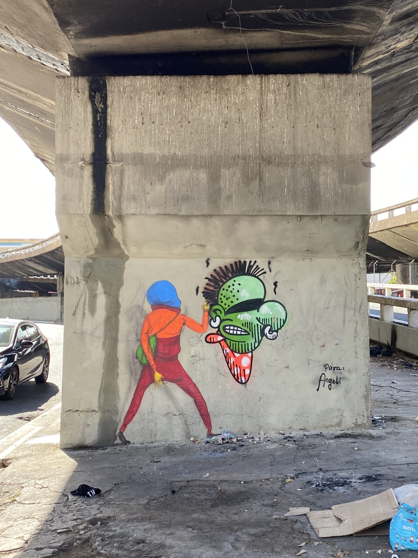 上の世代にもスプレーを使う人はいたけれど、レタリングのスタイルではなかった。フリースタイルのドローイング、ローラーで大きな絵を描くような、キース・ヘリングやバスキアに近いものだった。それに政治的なフレーズを描いているのをよく目にしていた。「Tupinãodá」 というクルーがパイオニアで、彼らの活動が壁に描くという可能性を見せてくれた。ただ、ヒップホップとは直接結びついていなかったね。